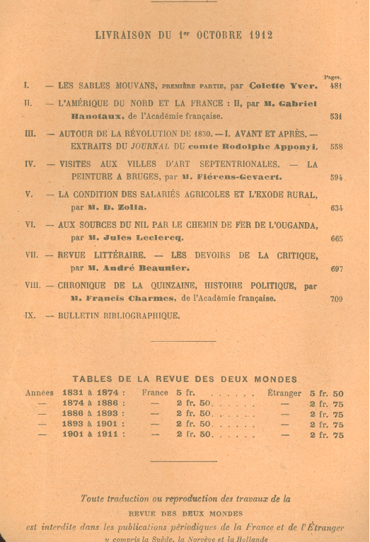 R48          Revue des Deux Mondes [Текст] / fundateur F. Buloz. – 1912. – T. 11 (1 octobre). – P. 412-720. – На тит. арк. кн. знак: Militaerwissenschaftlicher und Kasino Verein in Lemberg B.