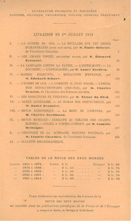 R48          Revue des Deux Mondes [Текст]. – 1913. – T. 16 (1juillet). – 240 p. – На тит. арк. кн. знак: Militaerwissenschaftlicher und Kasino Verein in Lemberg B.