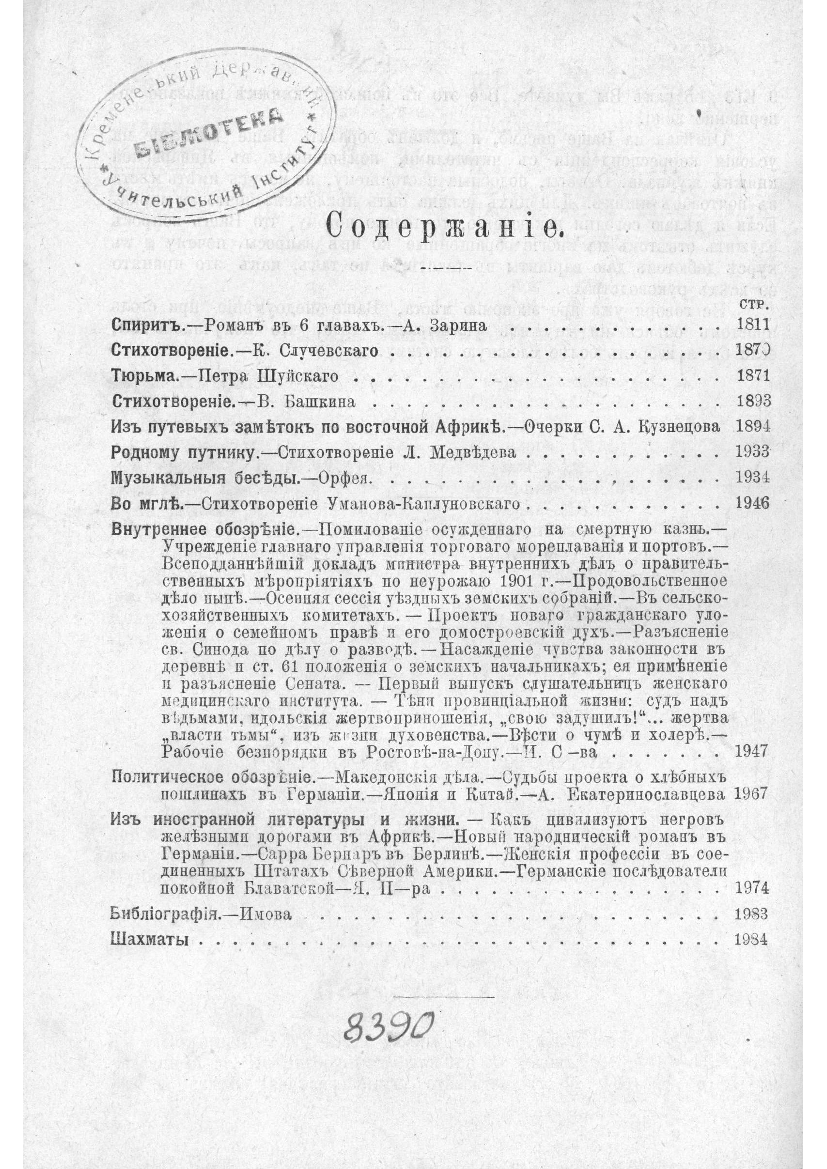[Текст] : ежемесячный литературный и политическій журналъ. № 10/12. – С.-Петербургъ : "С.-Петербургская Электропечатня", 1902. – С. 1494–1992. – Титульний аркуш відсутній та немає декількох сторінок.
