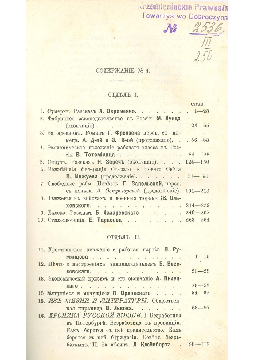 [Текст] : литературный и общественно-политическій журналъ. № 4 / редакторъ-издатель А. Я. Острогорскій. – С.-Петербургъ : Типо-литографія Б. М. Вольфа, 1906.