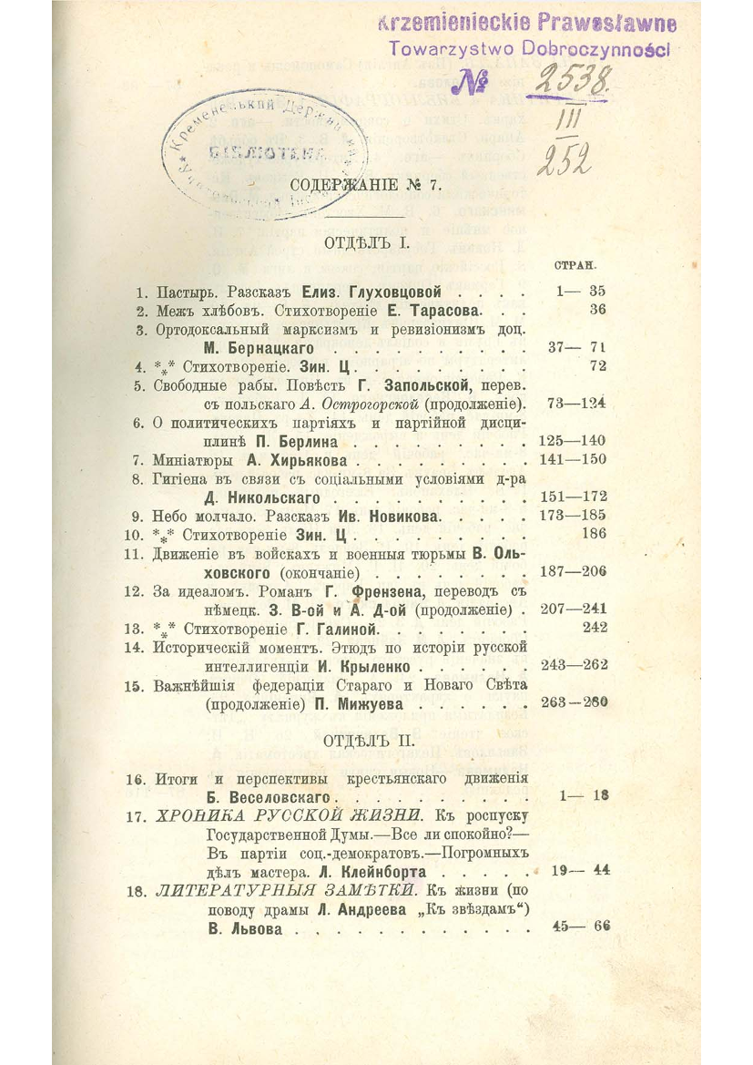[Текст] : литературный и общественно-политическій журналъ. № 7 / редакторъ-издатель А. Я. Острогорскій. – С.-Петербургъ : Типо-лит. Б. М. Вольфа, 1906.