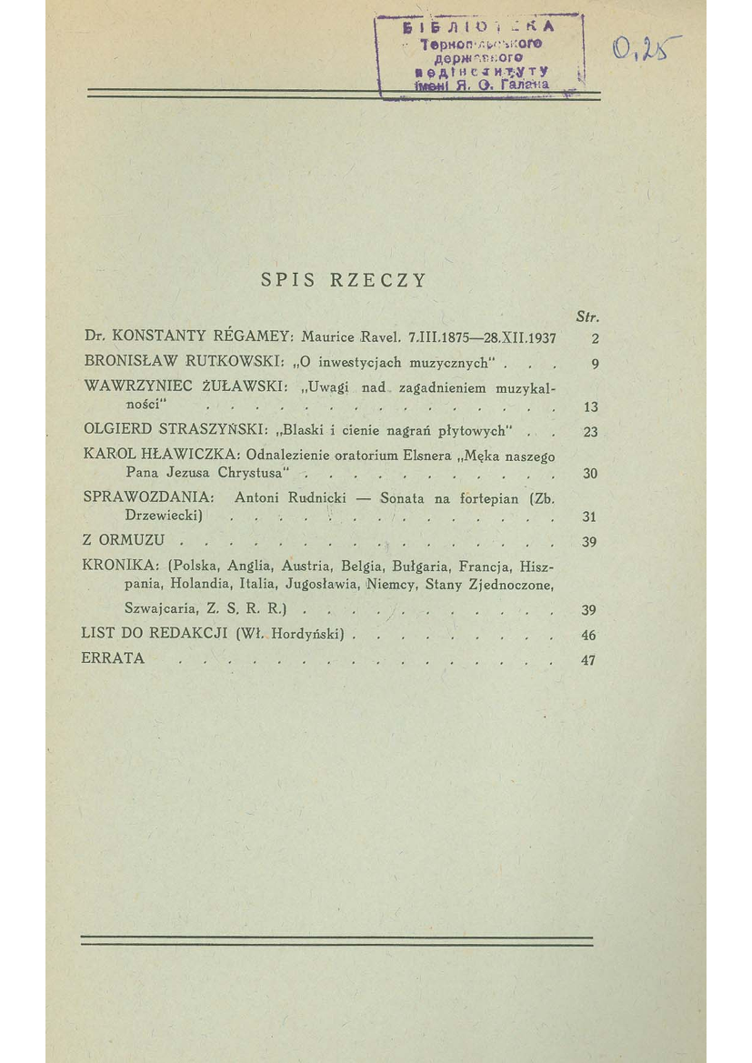[Текст] : pismo poswiecone zagadnieniom zycia muzycznego w Polsce. – 1938. – Rocznik 5, zeszyt 1 (styczen).