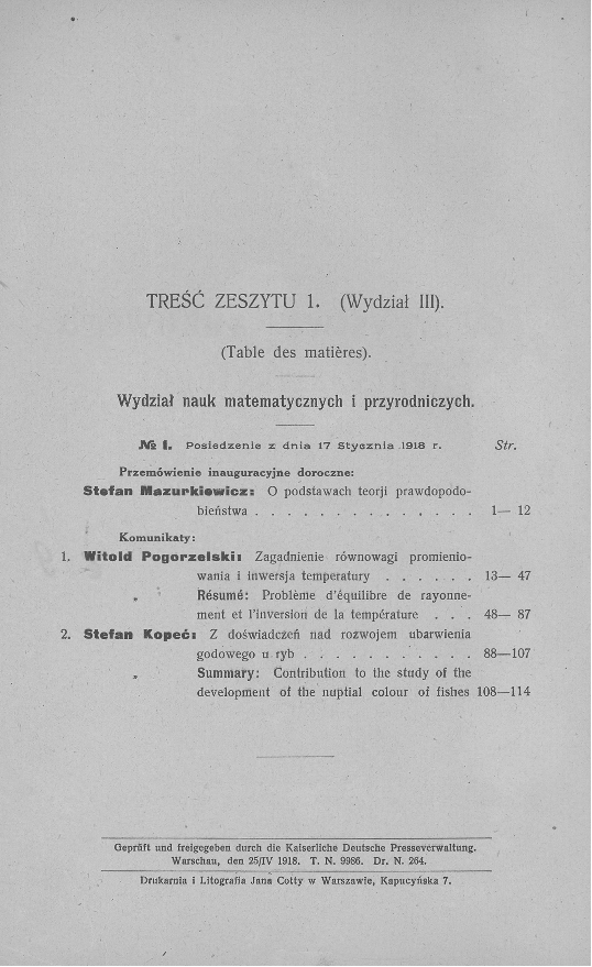 [Текст] = Comptes rendus des seances de la Societe des Sciences de Varsovie : [czasopismo]. – 1918. – Rok 11, zeszyt 1-6.