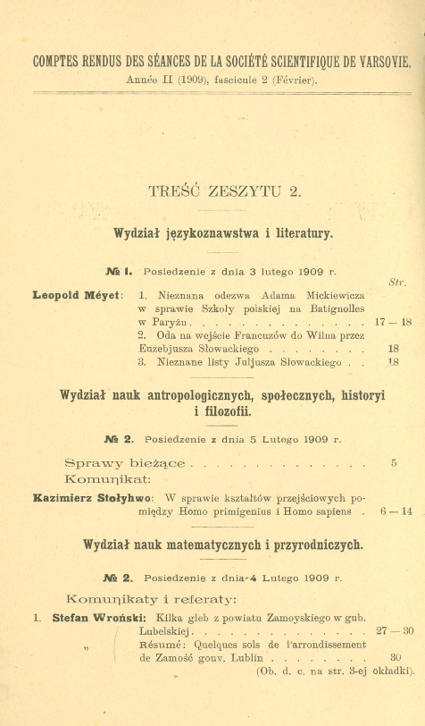 Sprawozdania z posiedzen Towarzystwa Naukowego Warszawskiego. Wydzial nauk antropologicznych, spolecznych, historyi i filozofiii [Текст] = Comptes rendus des seances de la Societe Scientifique de Varsovie : [czasopismo]. – 1909. – Rok 2, zeszyt 1-9.